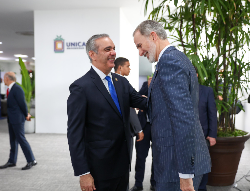 Más temprano, el presidente Luis Abinader y el rey de España, Felipe VI, participaron en la inauguración del nuevo edificio de la Universidad del Caribe (UNICARIBE), una obra que fortalece la infraestructura académica del país y responde al compromiso del gobierno con la educación superior.