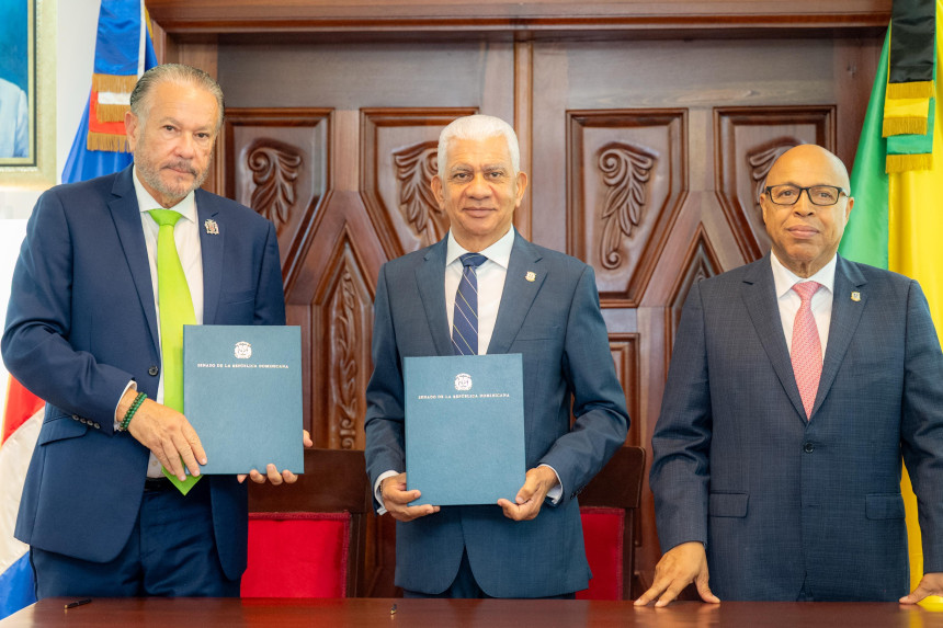 Santo Domingo. -El Senado de la República, representado por el presidente, Ricardo de los Santos, y el Parlamento de Jamaica, representado por el presidente del Senado, Thomas Tavares-Finson, firmaron un acuerdo para el desarrollo de las relaciones entre los pueblos y gobiernos de los diferentes Estados con la finalidad de contribuir con la paz y solidaridad de los diferentes países.