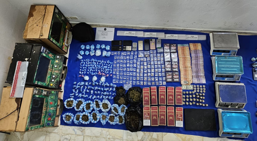 Además, se ocuparon 18 balanzas, 11 celulares, 4 máquinas tragamonedas, varias cajas de cigarrillos, 2 computadoras laptop, RD$34,170 pesos dominicanos, un dólar, entre otras evidencias.