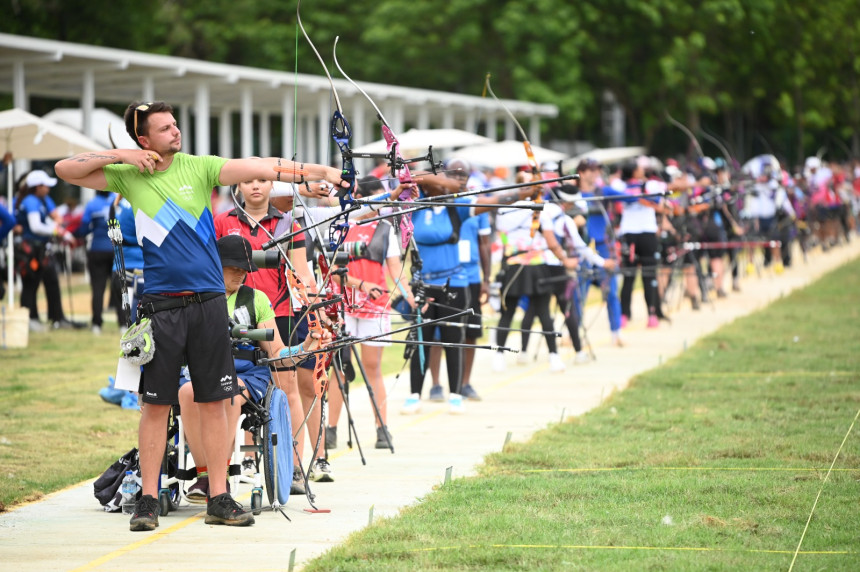 Los arqueros de los distintos países tomaron parte en las prácticas oficiales en el Campo de Tiro del Parque del Este.