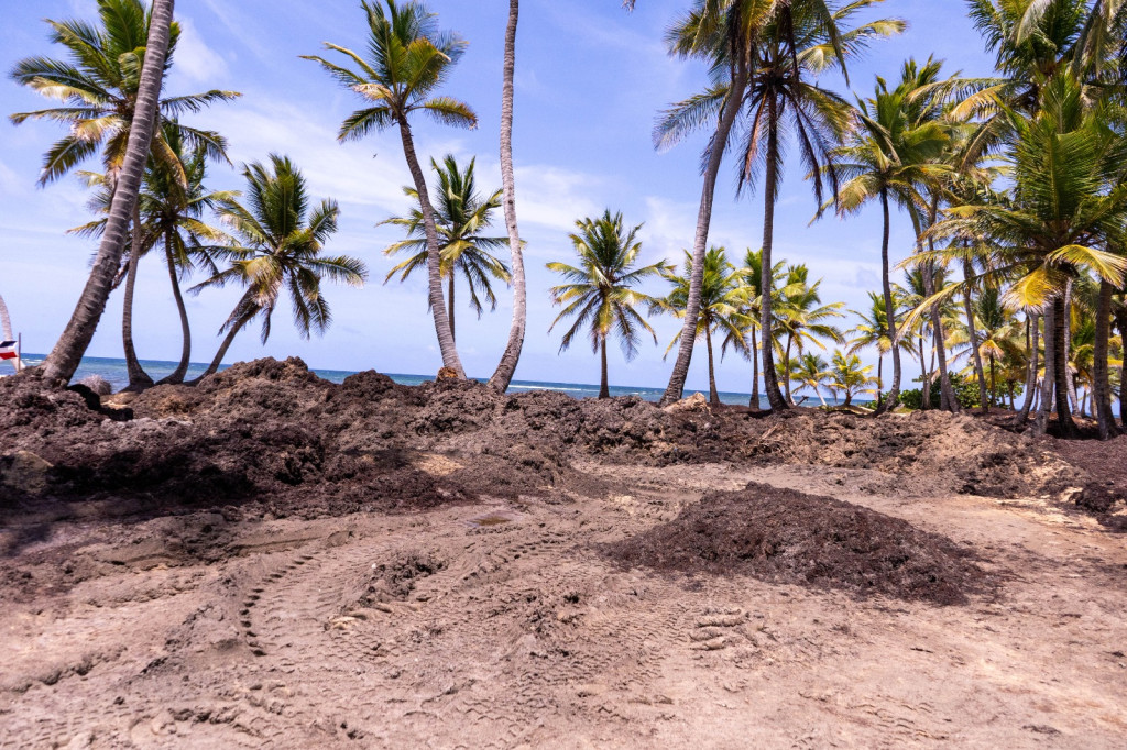 Se encontró también acopio de sargazo dentro de la zona de pleamar, lo cual está prohibido según los lineamientos técnicos del Viceministerio de Recursos Costeros y Marinos, por representar un riesgo de contaminación por descomposición, la cual afecta a la flora y fauna nativa.
