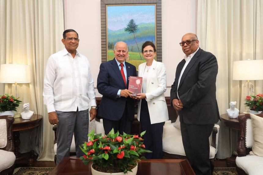 Se aprovechó el encuentro para entregar a la vicepresidenta Raquel Peña un ejemplar del libro Capital y Humanidad, de la autoría de los economistas doctores Jacqueline Boin y José Serulle Ramia.