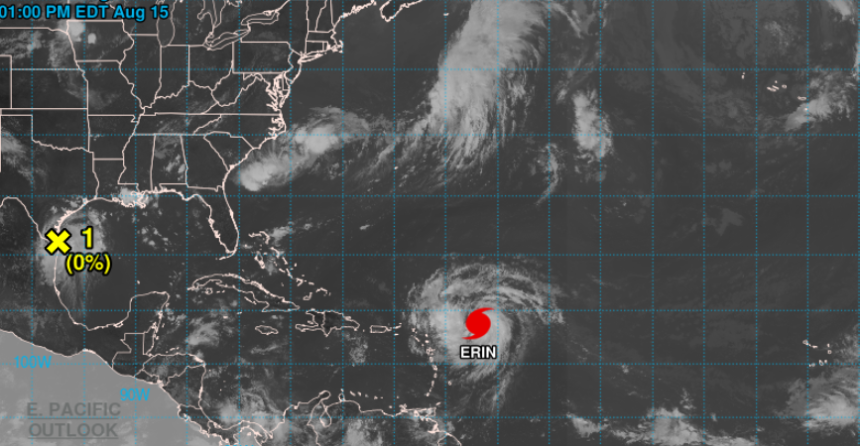 Erin, que amenaza con intensas lluvias y marejadas en las Islas de Sotavento del Norte, las Islas Vírgenes y Puerto Rico, se encuentra a unos 740 kilómetros (460 millas) al este de las Islas de Sotavento del Norte, con vientos máximos sostenidos de 120 kilómetros por hora (75 millas por hora) y se desplaza hacia el oeste-noroeste a 30 kilómetros por hora (18 millas por hora).