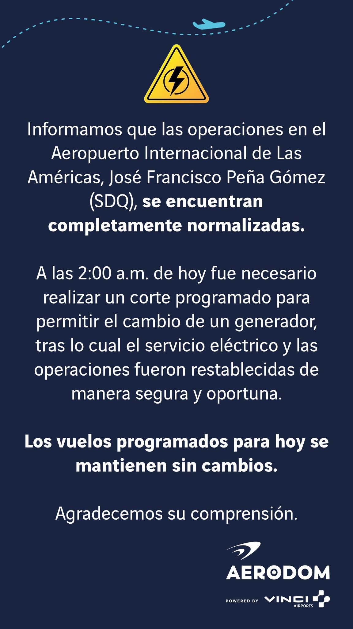 Ante la gravedad de la situación, el Departamento Aeroportuario solicitó un informe oficial a Aerodom para esclarecer las causas del fallo, evaluar los protocolos aplicados y establecer responsabilidades, con el fin de evitar que un evento de este tipo vuelva a repetirse.