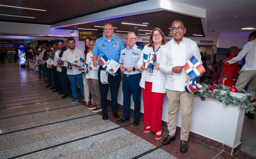 La diáspora dominicana fue recibida con emotivas canciones distintivas de nuestra identidad como Santo Domingo, Mi Pueblo, Alegre Vengo y Volvió Juanita, interpretadas por el coro del Departamento Aeroportuario.