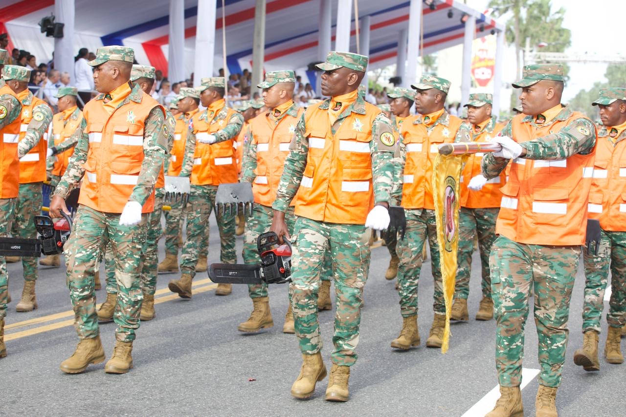 En el desfile, batallones del Ejército, la Armada y la Fuerza Aérea de República Dominicana, junto con unidades de la Policía Nacional, mostraron sus equipamientos, muchos adquiridos en la actual gestión del gobernante, y sus destrezas operacionales para defender la soberanía del suelo patrio y la seguridad ciudadana.