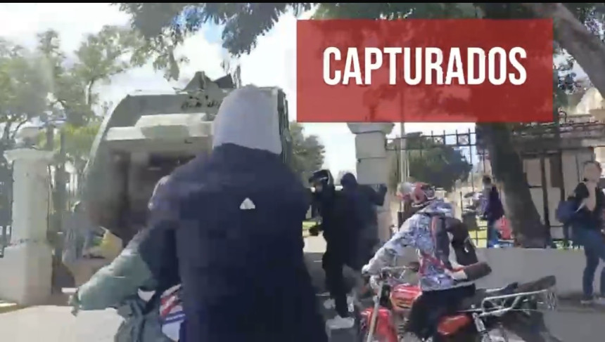 Durante la intervención policial, las autoridades lograron la captura de los ocho involucrados en el hecho, ocupando además una motocicleta vinculada al incidente, así como el arma blanca utilizada en la agresión.