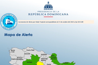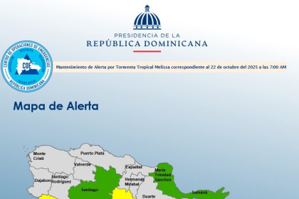 COE mantiene 9 provincias y el Distrito Nacional en alerta roja por los efectos de la tormenta tropical Melissa