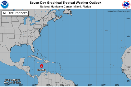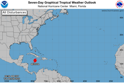Huracán Melissa continúa generando amplia nubosidad y lluvias sobre RD